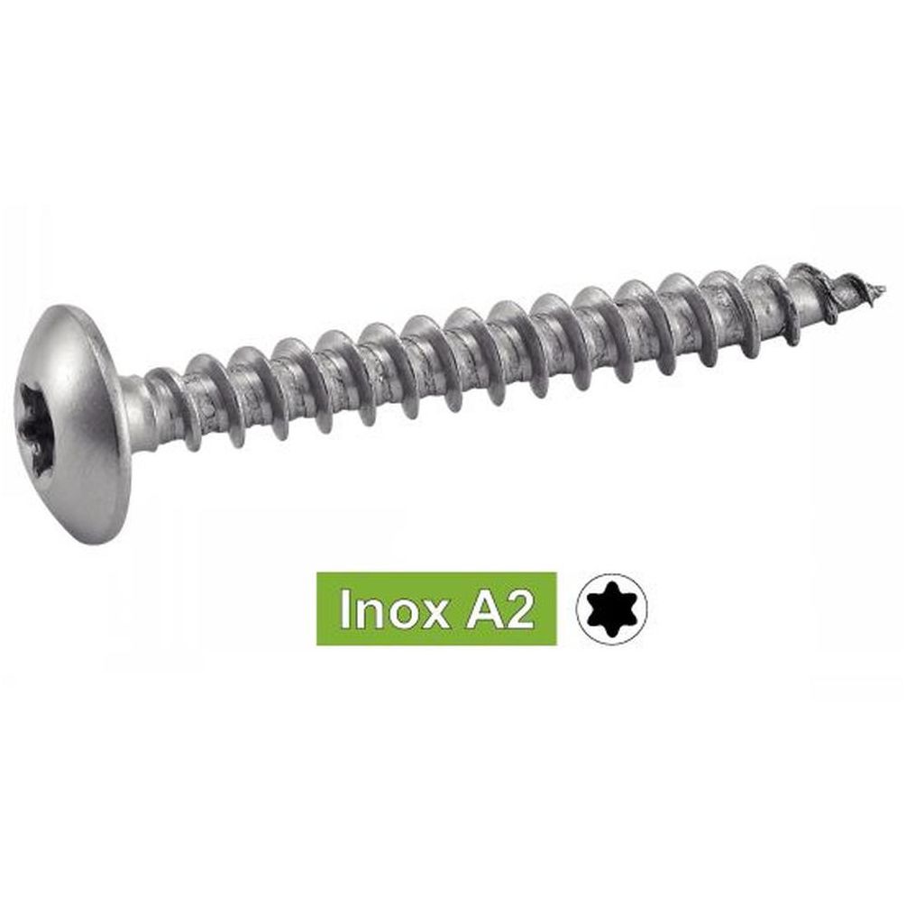 100 Vis de Pentures Tête Cylindrique Large Six Lobes 6 x 35 mm - Inox A2 - D-Work