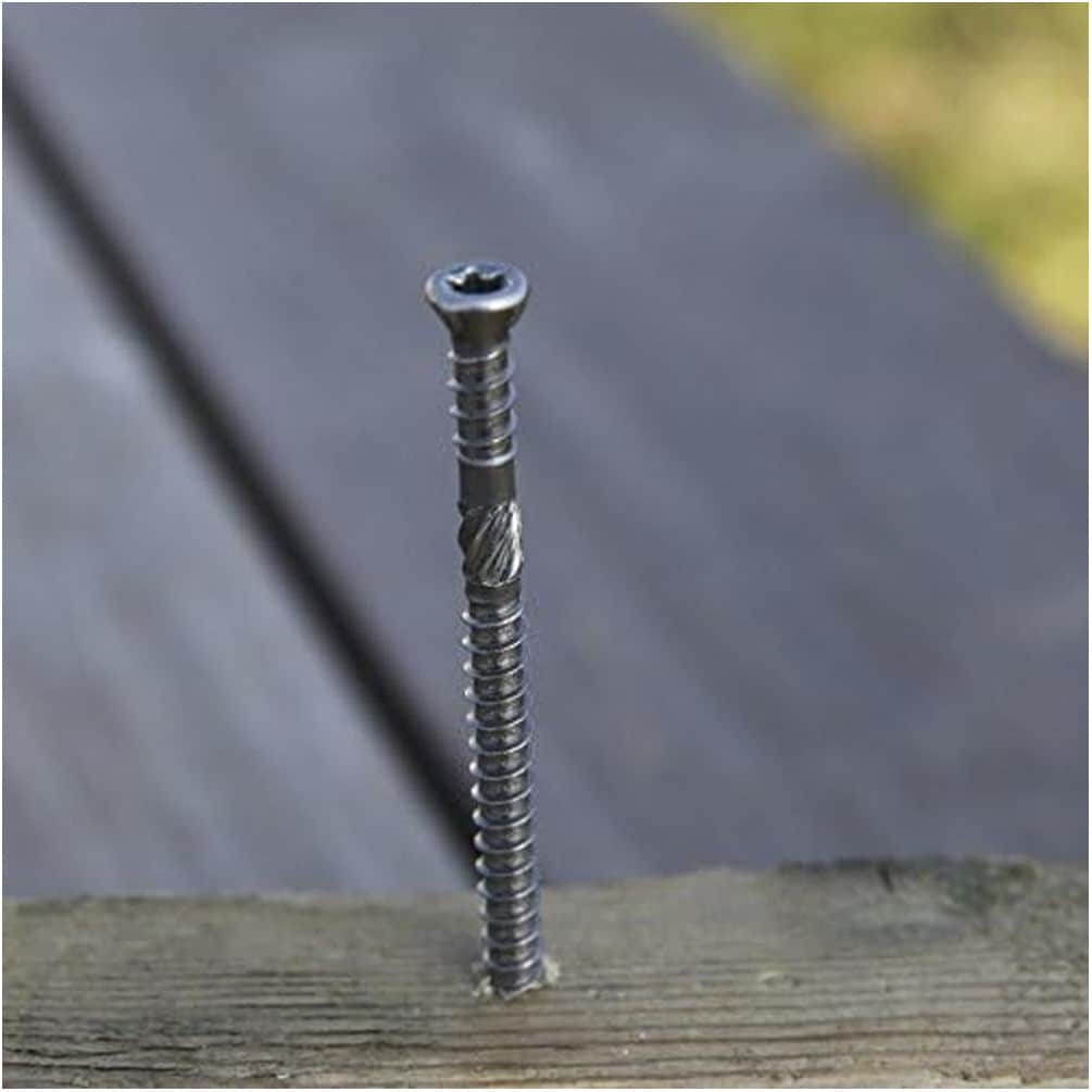 Ces vis sont spécialement conçues pour la fixation des lames de terrasse en bois. Utilisez une visseuse adaptée avec embout six lobes pour un montage rapide et efficace. Convient pour les bois durs et tendres en extérieur.