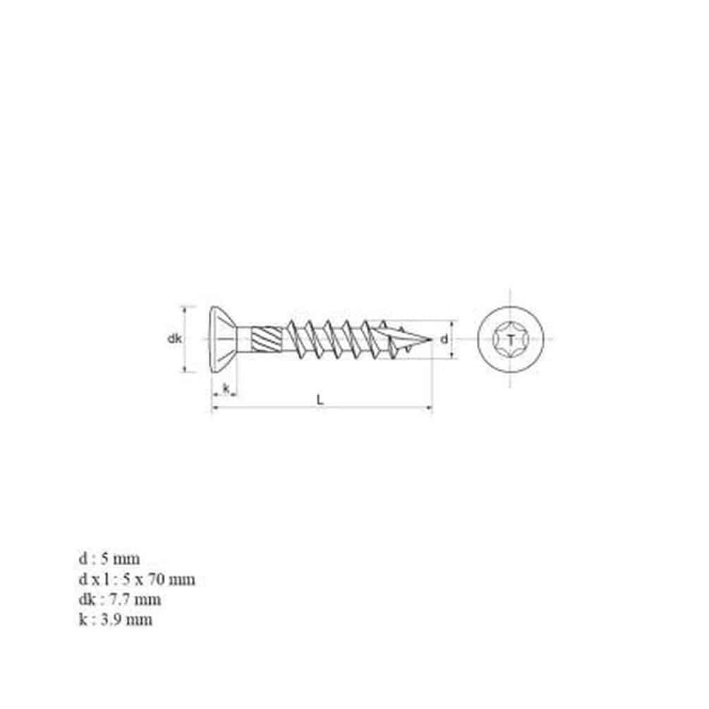 100 Vis pour Terrasse Tête Fraisée Bombée Six Lobes Double Filet 5 x 70 mm - AISI 410 - D-Work