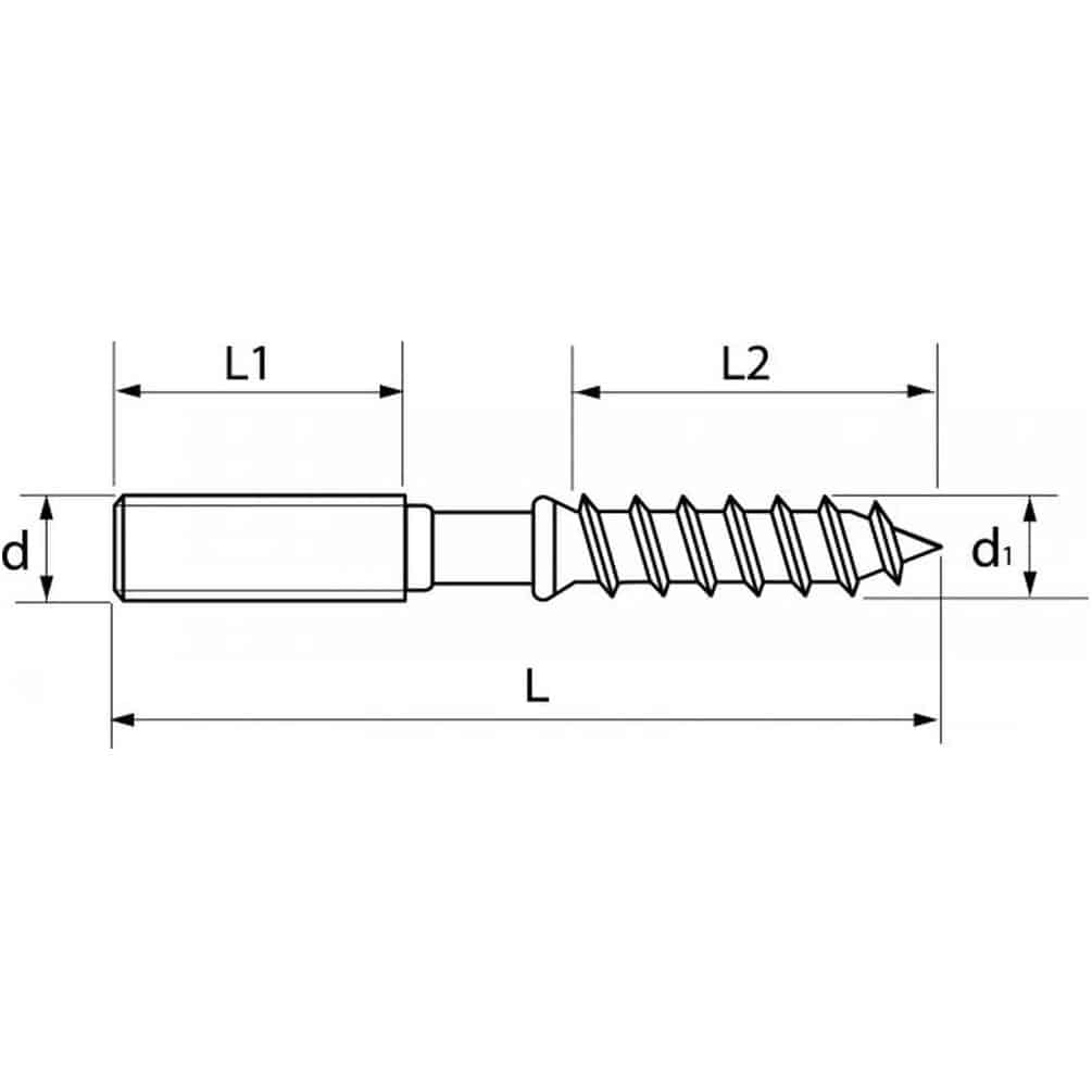 25 Pattes à Vis Filetage Bois et Métaux 10 x 140 mm - Inox A2 - D-Work