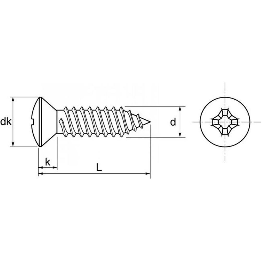 Ref. ACT-624125,5X25En savoir + sur 200 Vis à Tôle Tête Fraisée Fendue Carré DIN 7981 Empreinte C1 5.5 x 25 mm - DIN 7983 - Inox A2 - D-Work