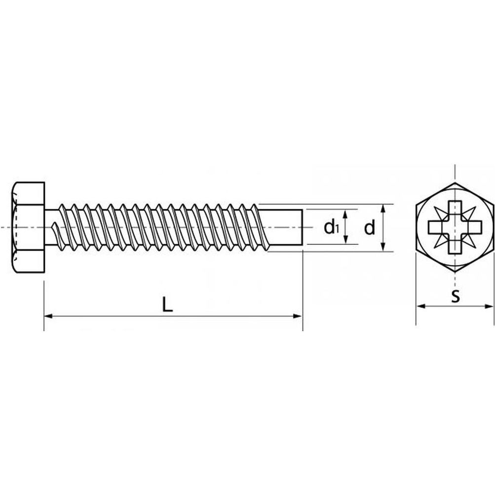 200 Vis à Tôle Tête Hexagonale Pozidriv avec Bout Pilote 4.8 x 35/30 mm - Inox A2 - D-Work