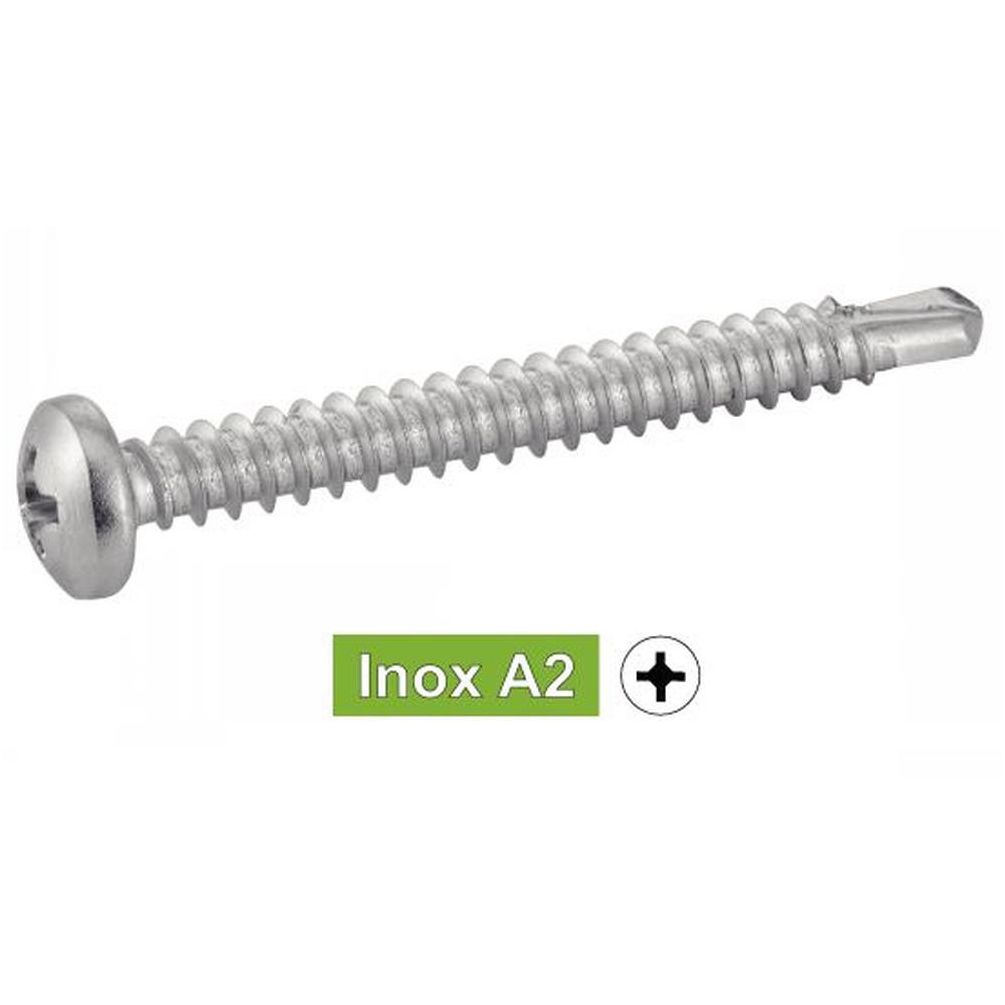 Ce lot de 200 vis autoperceuses à tête cylindrique Phillips de dimensions 4,2x32 mm est conçu en inox A2, garantissant une excellente résistance à la corrosion. Conforme à la norme DIN 7504 M (similaire à ISO 15481), ces vis sont idéales pour des applications nécessitant une fixation rapide et fiable sur des matériaux métalliques ou autres supports.