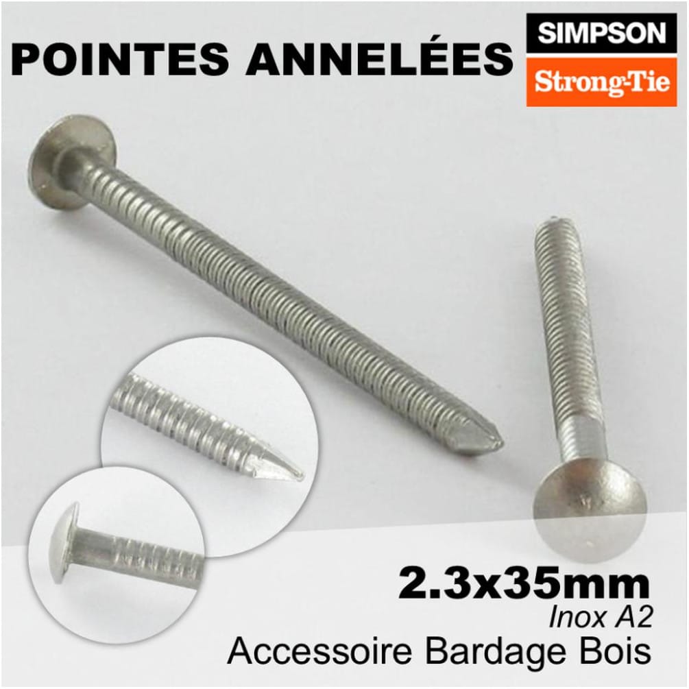 Pointe Annelée Tête Bombée CDT250G 2.3 x 35 mm - Inox A2 - D-Work