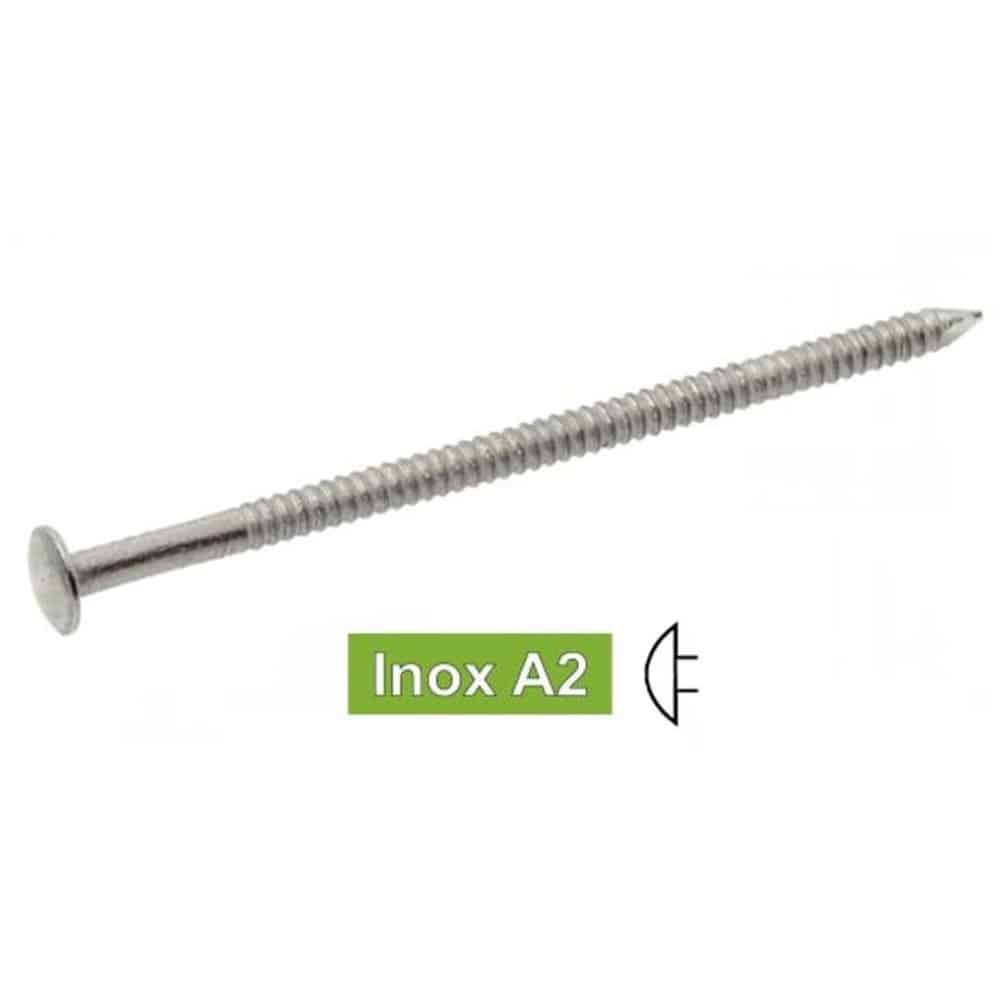 Pointe Annelée Tête Bombée CDT250G 2.3 x 30 mm - Inox A2 - D-Work
