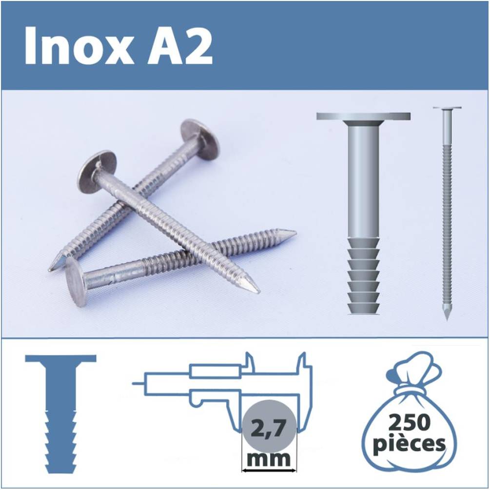 Pointe Annelée Tête Bombée CDT250G 2.3 x 35 mm - Inox A2 - D-Work