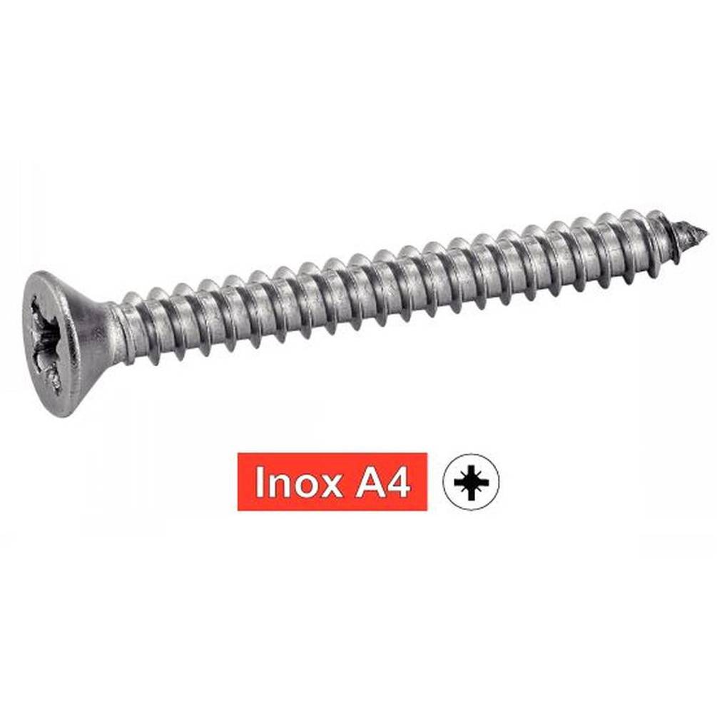 200 Vis à Tôle Tête Fraisée Pozidriv 6.3 x 38 mm - DIN 7982 - ISO 7050 - NFE25-656 - UNI 6955 - Inox A4 - D-Work