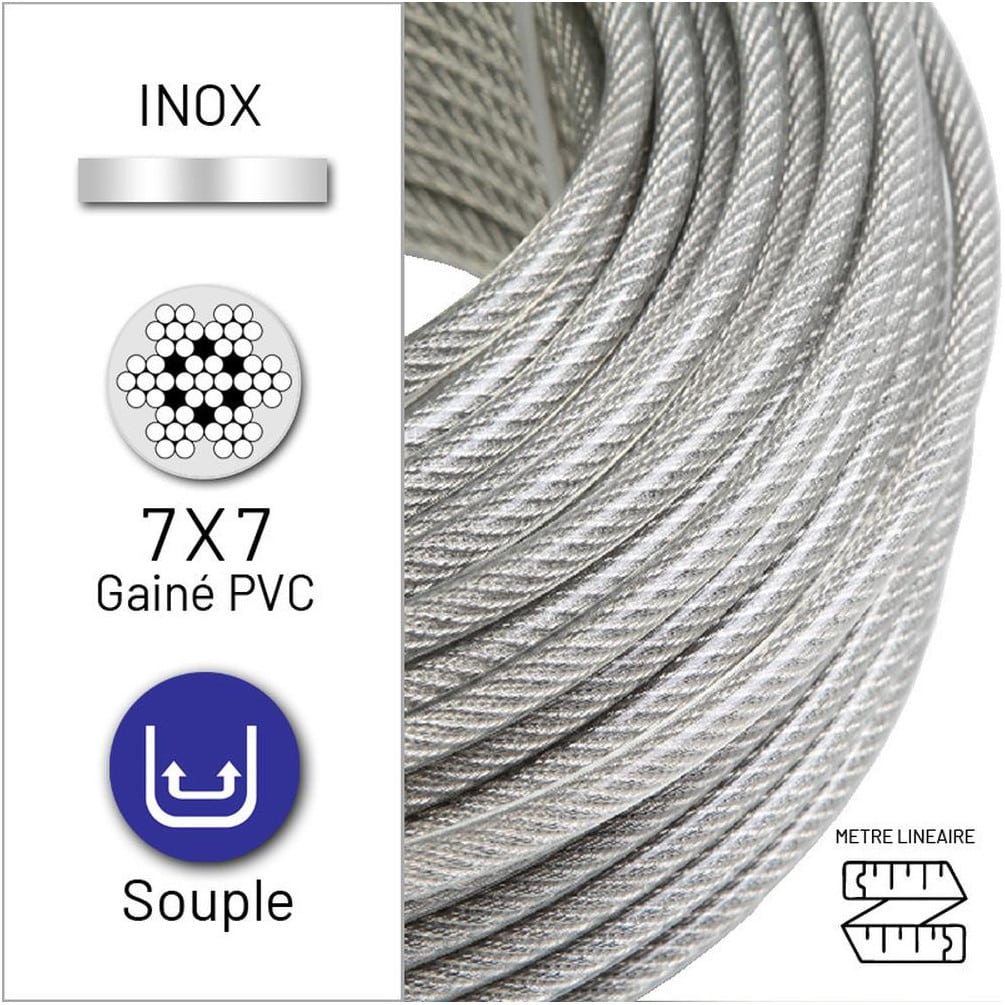 250 M Cables Souples 7x7 avec Gaine Pvc Transparente 4 mm - Inox A4 - D-Work