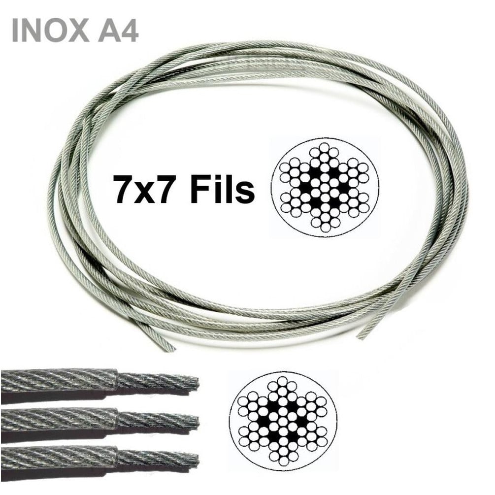 50 M Cables Souples 7x7 de 10 mm - Inox A4 - D-Work