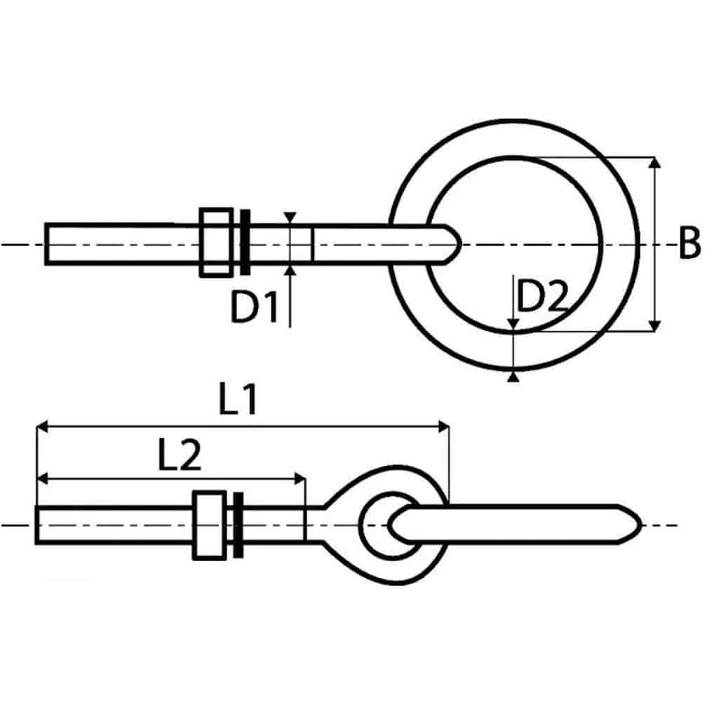 Piton à Oeil Filetage Métrique avec Anneaux Articulés 12 x 150 mm - Inox A4 - D-Work