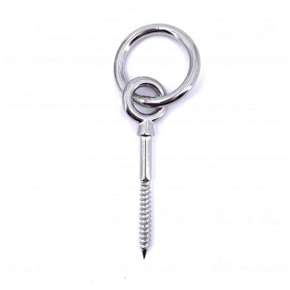 5 Pitons à Oeil Filetage Bois avec Anneaux Articulés 6 x 60 mm - Inox A4 - D-Work