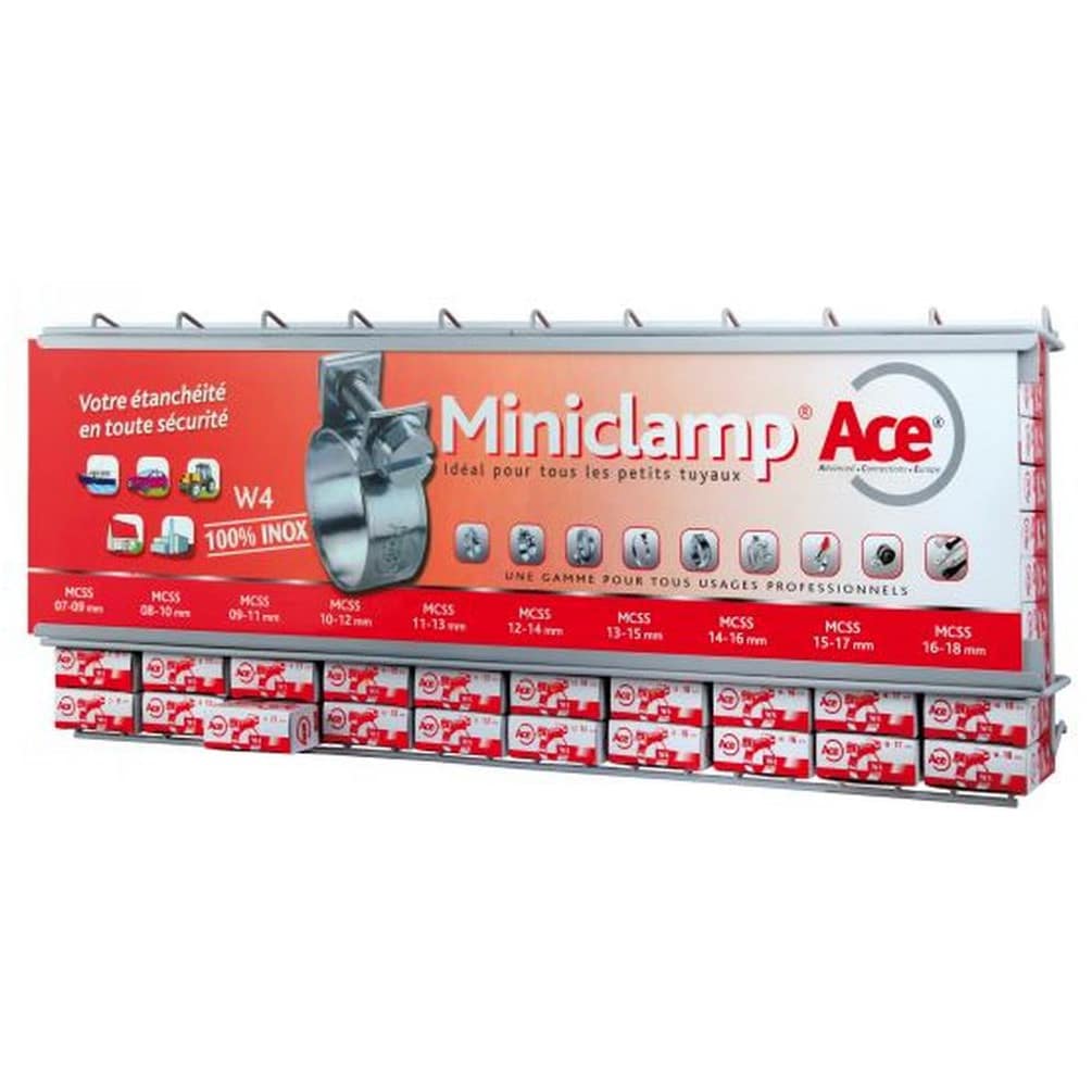 Ref. ACT-HCD1000 MCSSEn savoir + sur 1 Présentoir de 1000 Colliers de Serrage Miniclamp mm - W4 - D-Work