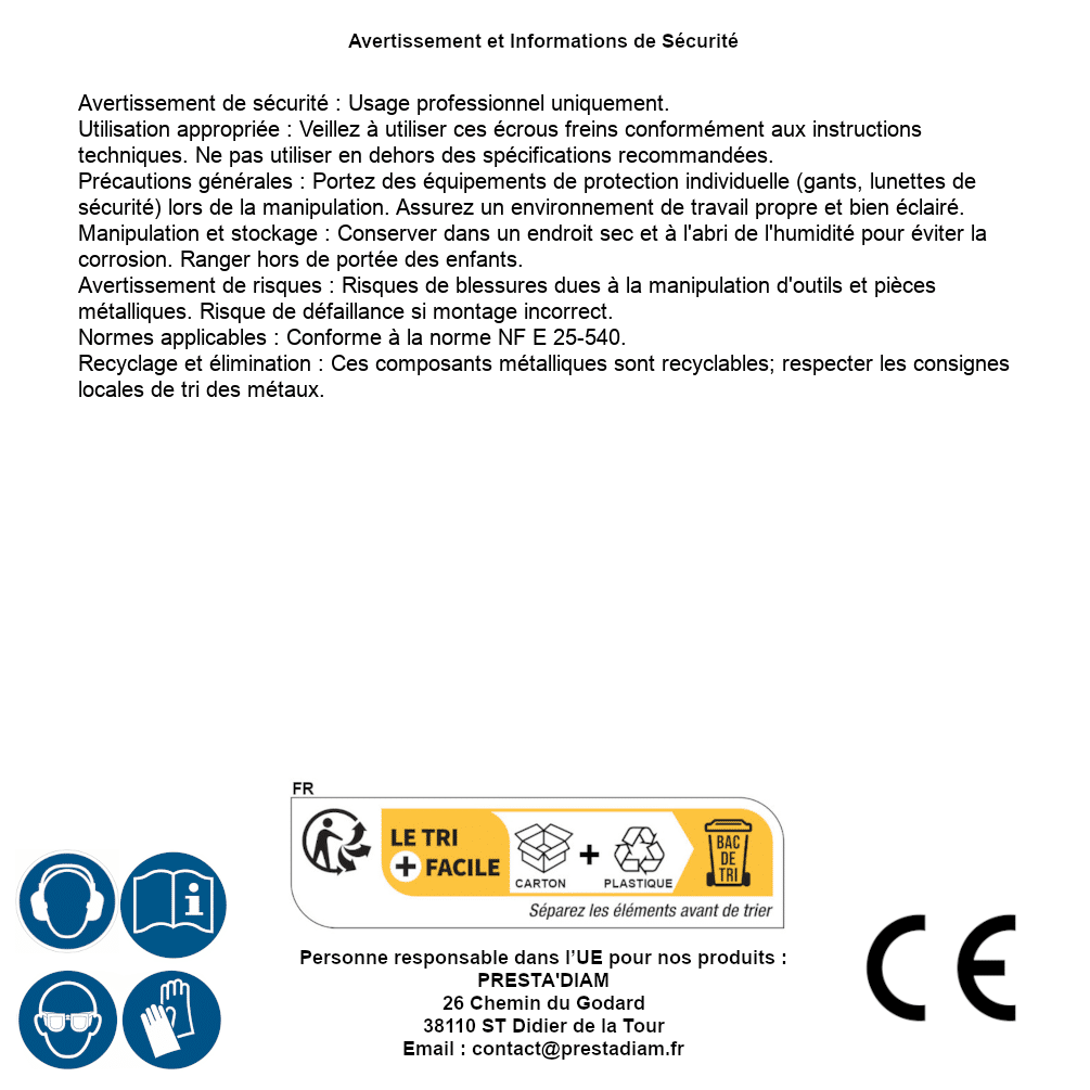 | AVERTISSEMENT et SECURITE | Identification de la personne responsable dans l’UE : Nom : PRESTA'DIAM. Adresse : 26 Chemin du Godard, 38110 ST Didier de la Tour (France). Email : contact@prestadiam.fr. |