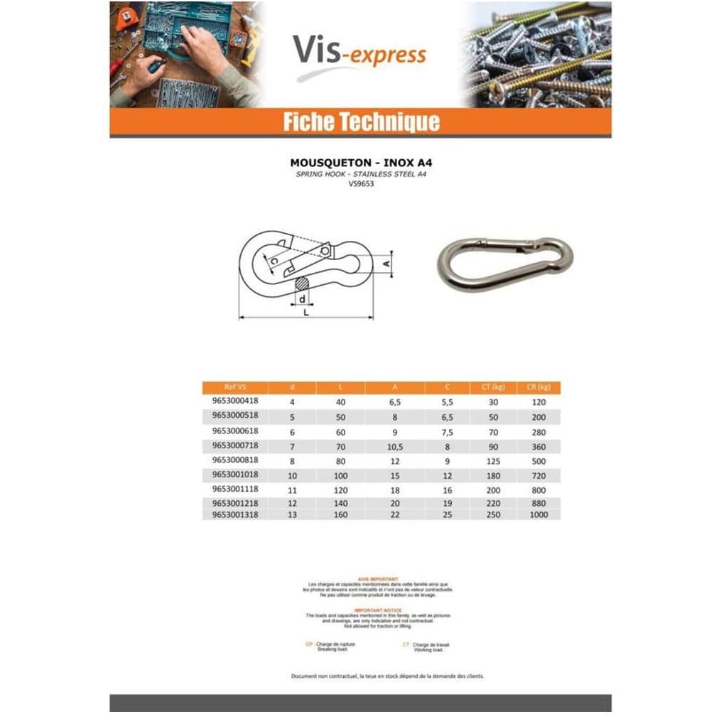 5 Mousquetons 8 mm - Inox A4 - D-Work