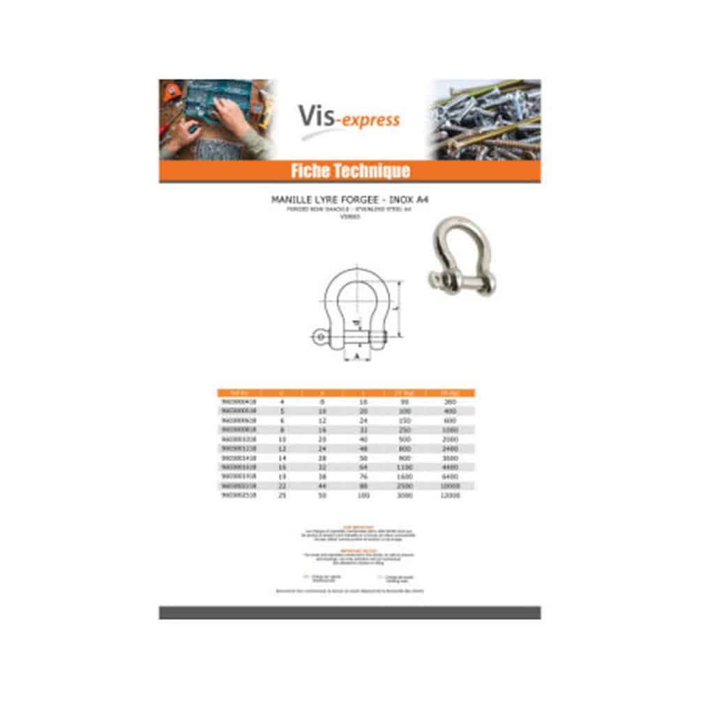 5 Manilles Lyre Forgée 5 mm - Inox A4 - D-Work
