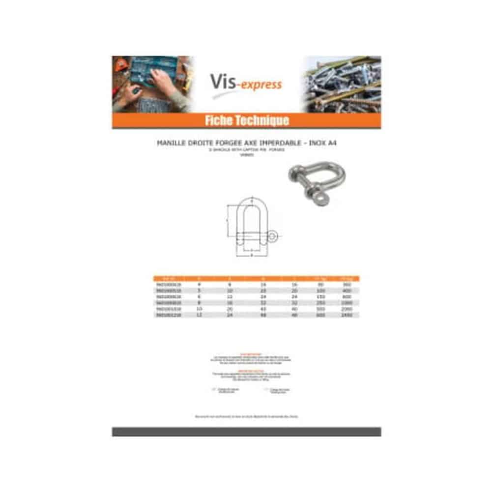 Cette manille est recommandée pour les travaux de levage, les fixations de charges, les installations marines, et toutes applications nécessitant une liaison fiable entre éléments. Veillez à respecter la charge maximale recommandée et à vérifier régulièrement l'état de la manille pour garantir la sécurité.