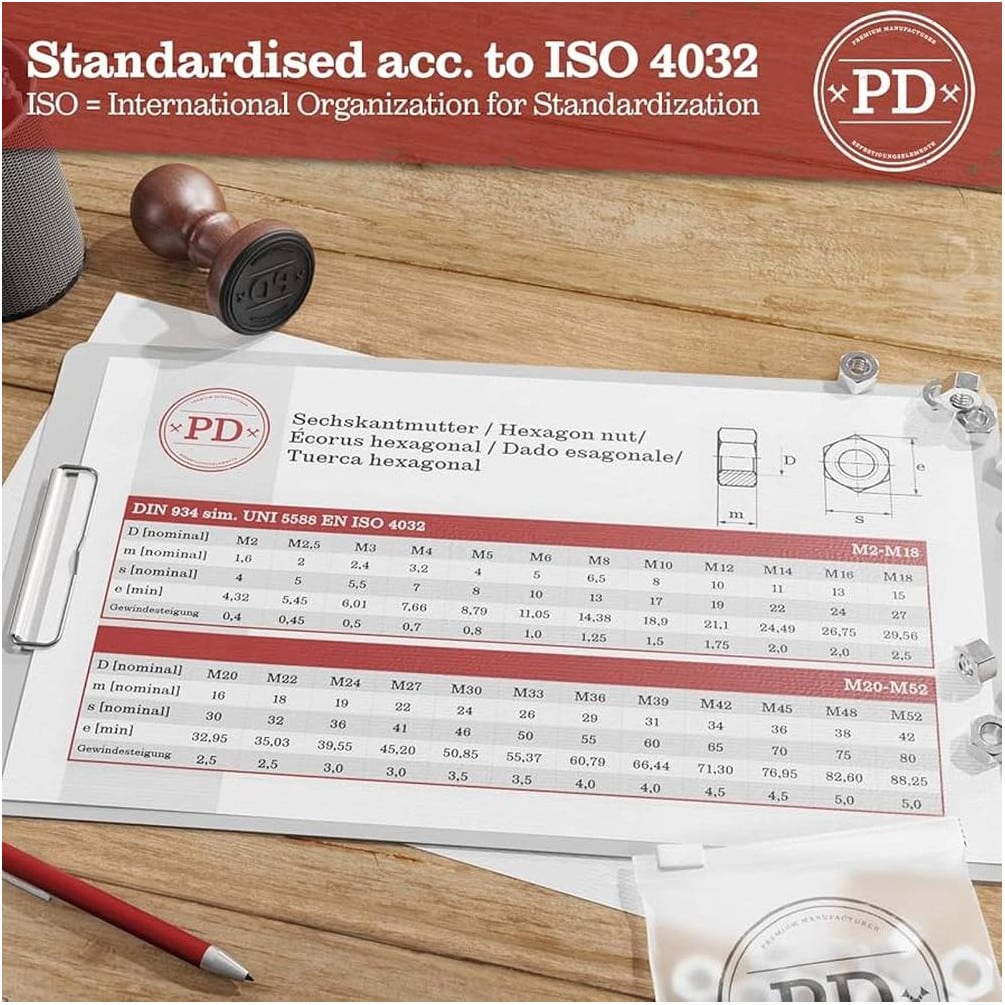 - Norme : DIN 934 (équivalent ISO 4032, NFE25-401, UNI 5588)