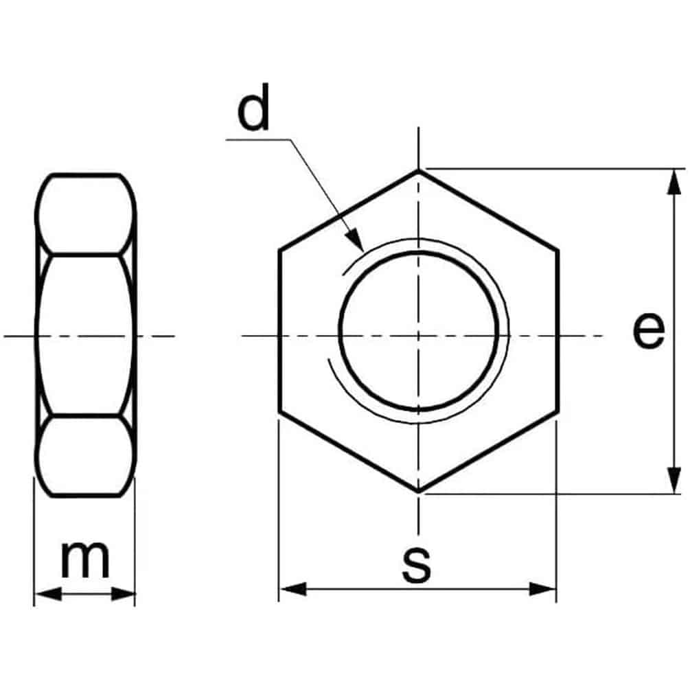 - Norme : DIN 439 (similaire ISO 4035, NFE25-405, UNI 5589)