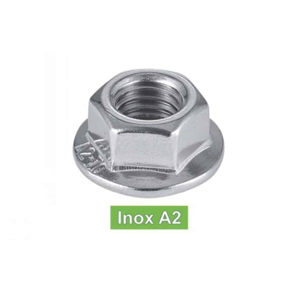 Ce lot de 100 écrous à embase crantée M12 en inox A2 conforme à la norme DIN 6923 (ISO 4161, NFE25-406) est idéal pour des assemblages solides et durables. L'inox A2 garantit une excellente résistance à la corrosion, ce qui rend ces écrous adaptés à de nombreuses applications industrielles et de construction.