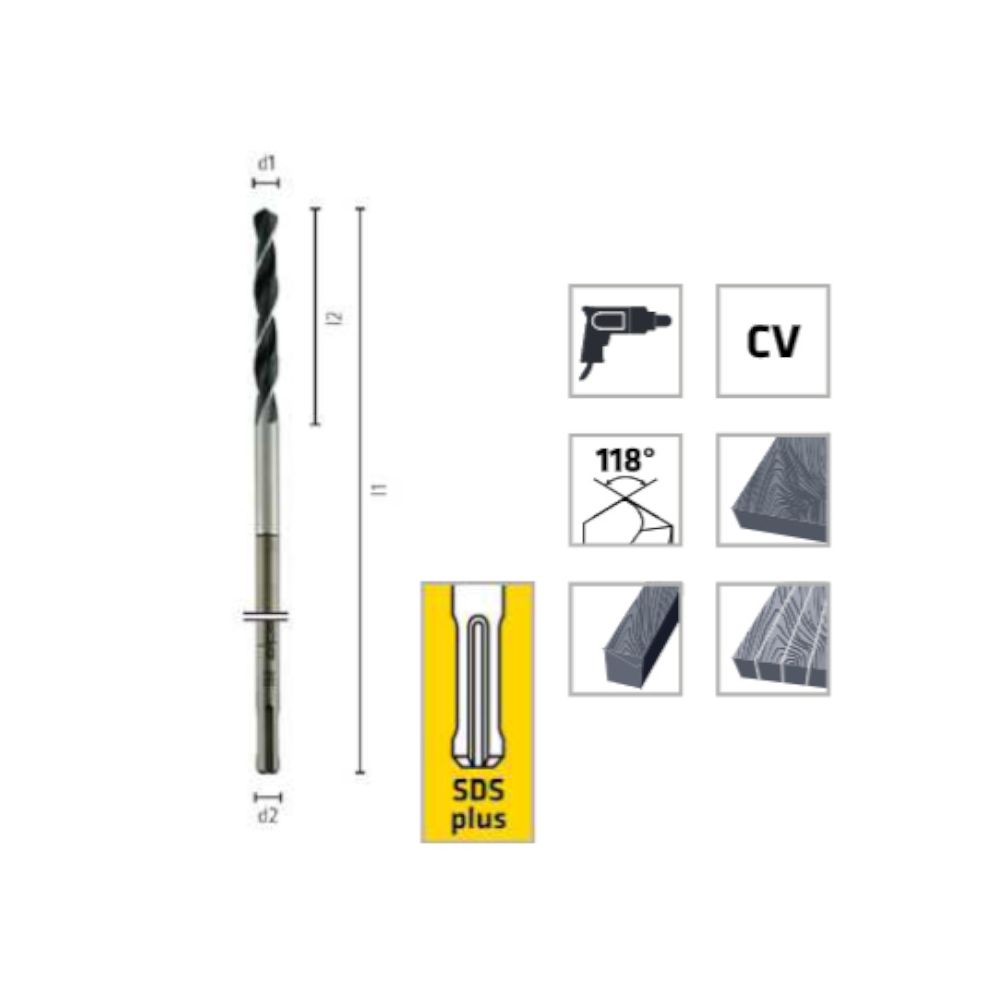 Foret Bois Coffrage pour Cavités, Poutres et Solives CV 118° D. 16 x Lt. 600 x Lu. 120 mm x Q. SDS+ x Z2 - Diamwood