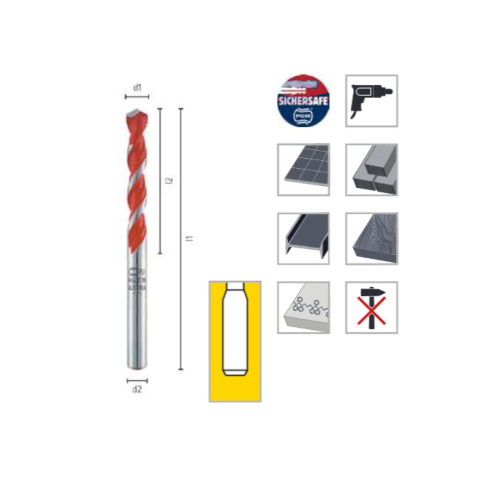 Ref. ALP-0017200650100En savoir + sur Foret Multi-Matériaux HM Court - Pierre, Métal, Bois, Plastiques 120° D. 6.5 x Lt. 100 x Lu. 54 x Q. 6.5 mm x Z2 - Diamwood