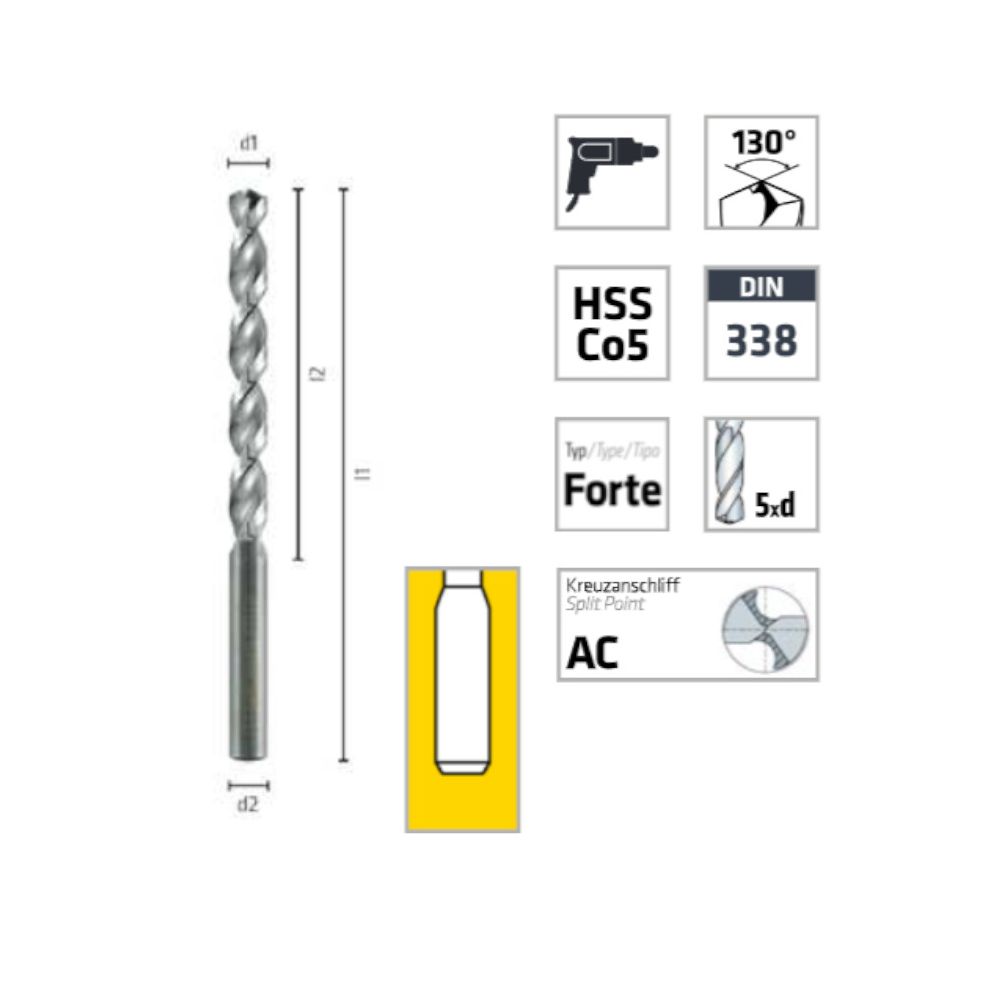 Idéal pour percer l'acier, l'inox, et autres métaux durs. Convient pour les perceuses électriques et à colonne. Pour une performance optimale, utiliser avec un lubrifiant de coupe et respecter les vitesses recommandées selon le matériau.