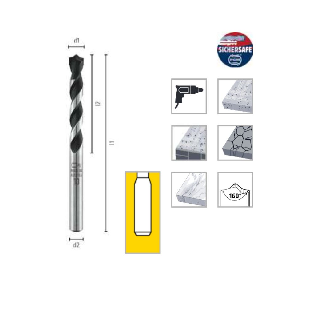 Ref. ALP-0018801600100En savoir + sur Foret Béton Carbure Tungstène DIN ISO 5468 - Béton, Brique et Pierre 160° D. 16 x Lt. 150 x Lu. 90 x Q. 10 mm x Z2 - Diamwood