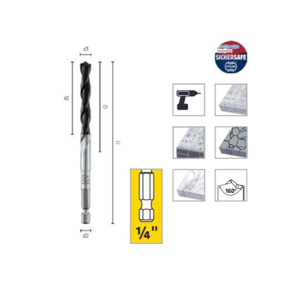 Foret à Béton Carbure 6 mm avec Emmanchement Hexagonal 1/4"