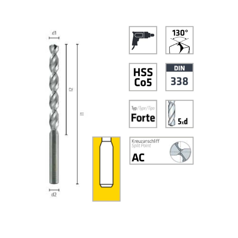 Foret Hélicoïdal Court 7,7 mm x 117 mm - HSS Forte Cobalt DIN 338