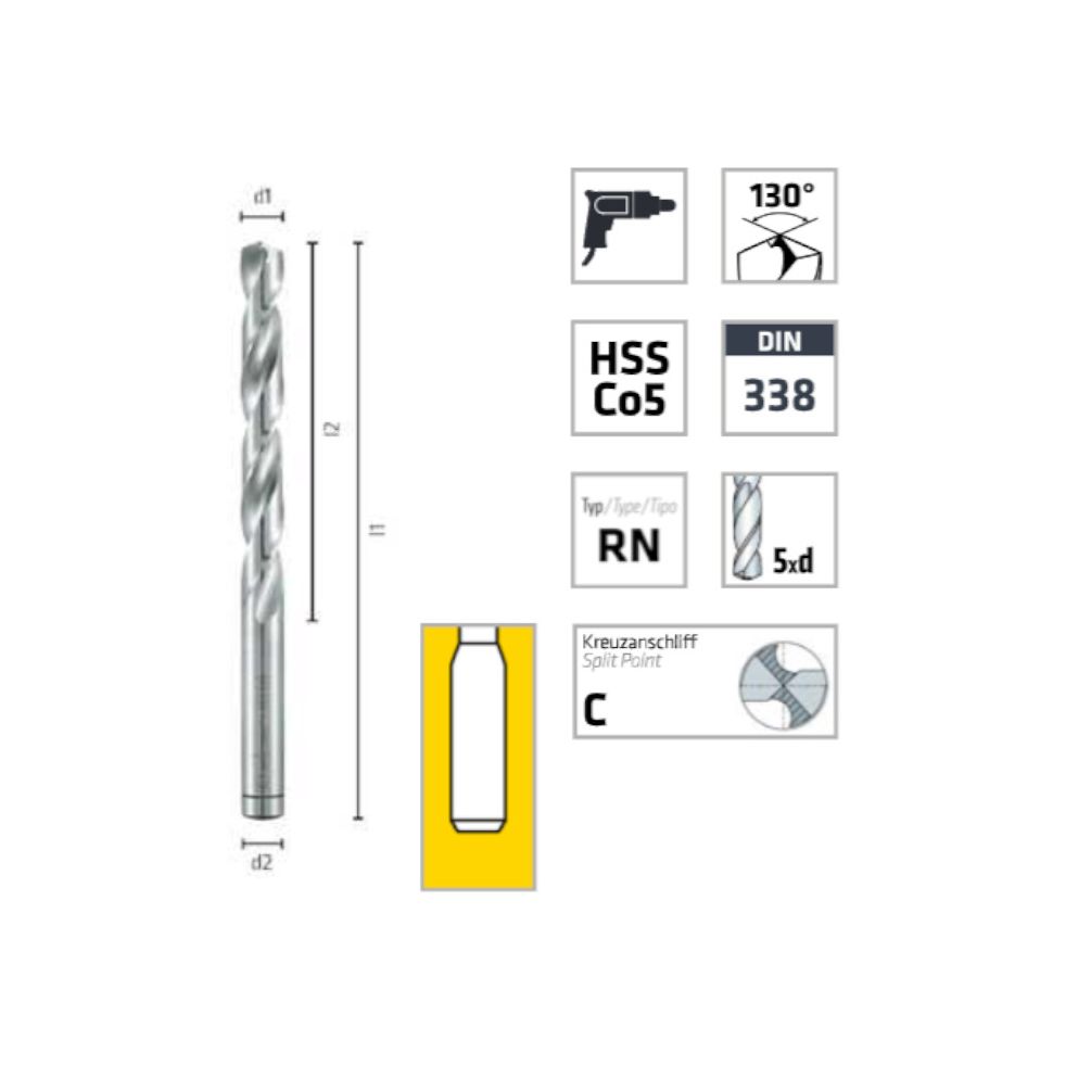 Foret Hélicoïdal Court HSS Cobalt Ø5,1 mm