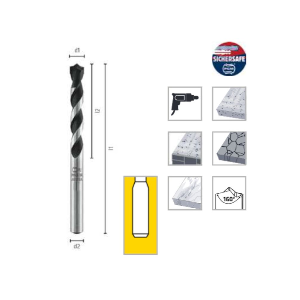 Ref. ALP-0073701200100En savoir + sur Foret Carbure Tungstène DIN ISO 5468 - Béton, Brique et Pierre 160° D. 12 x Lt. 200 x Lu. 140 x Q. 10 mm x Z2 - Diamwood