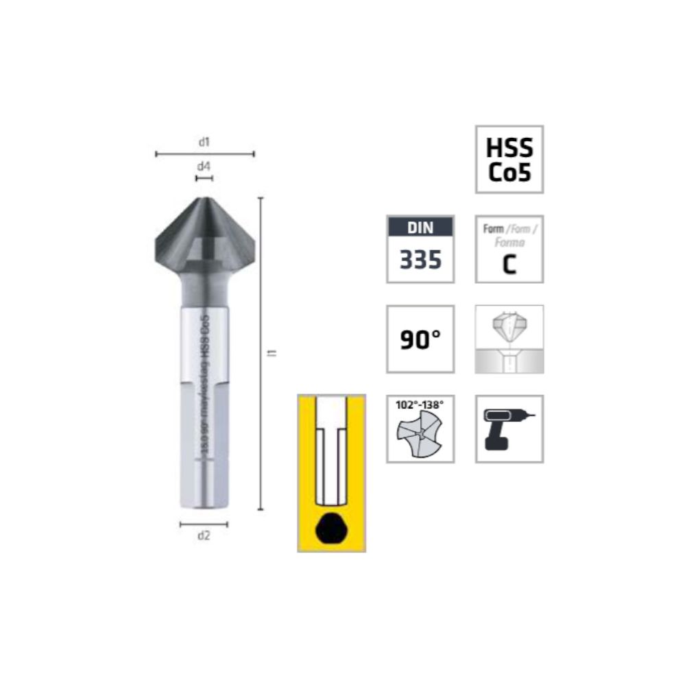 Fraise Conique à Débavurer HSS Cobalt Tige 3 Pans 6,3 mm - DIN 335 C