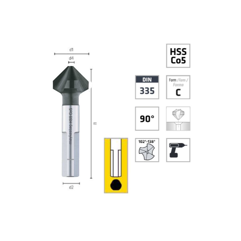 Cette fraise conique à débavurer de 20,5 mm de diamètre de coupe est conçue en acier rapide HSS avec ajout de cobalt pour une meilleure résistance à l'usure et à la chaleur. Sa tige à 3 pans assure une prise en main optimale dans les mandrins adaptés. Conforme à la norme DIN 335 C, elle offre une qualité professionnelle pour les travaux de finition et d'ébavurage sur métaux et autres matériaux durs.