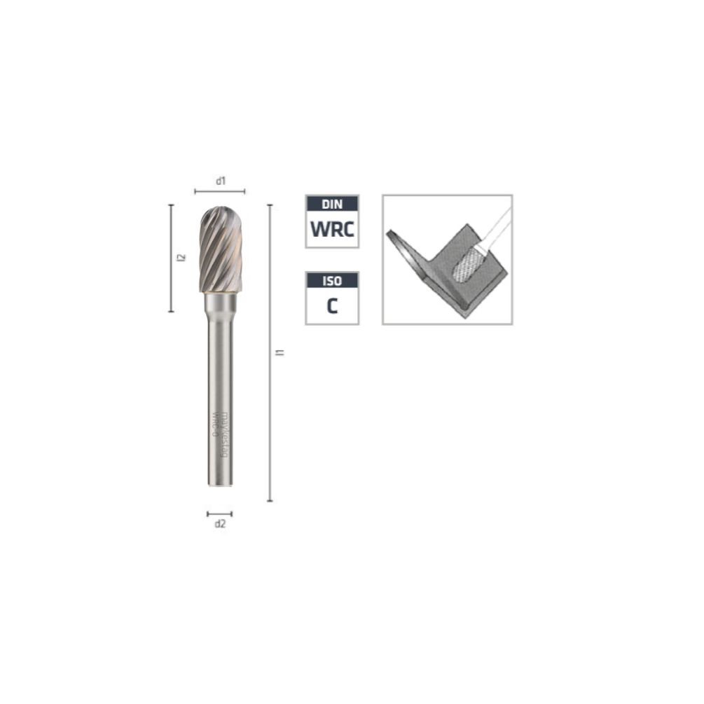 Fraise Rotative HM Tige Cylindrique Forme Boule - Inox D. 8 x Lt. 65 x Lu. 20 x Q. 6 mm - Diamwood