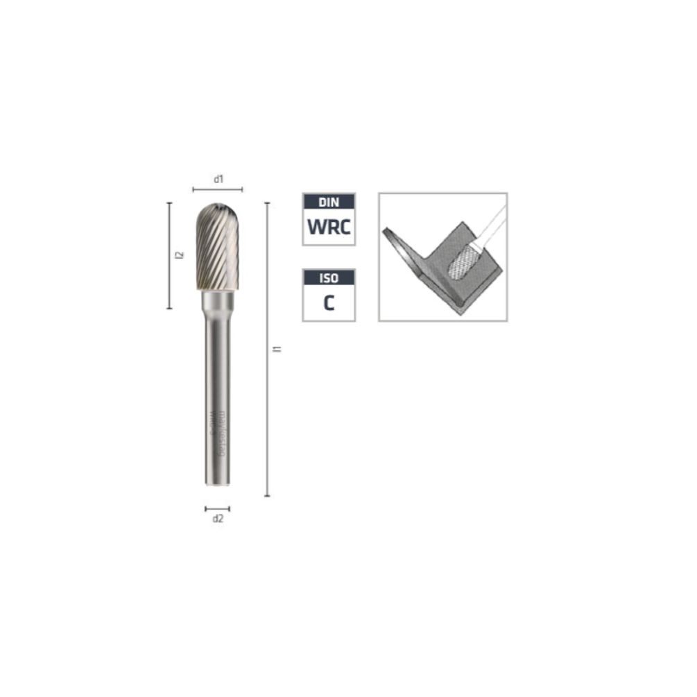 Fraise Rotative HM Tige Cylindrique Forme Boule - Aciers, Inox D. 4 x Lt. 40 x Lu. 10 x Q. 3 mm - Diamwood