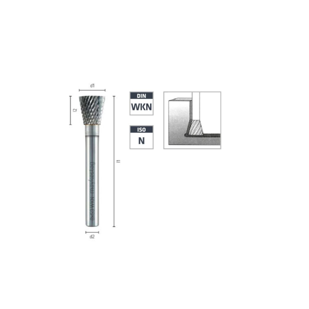 Fraise Rotative HM Tige Cylin. sans Coupe Frontale Cône Inversé - Fontes, Aciers D. 8 x Lt. 53 x Lu. 8 x Q. 6 mm - Diamwood