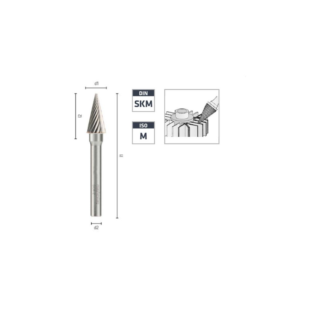 Fraise Rotative HM Tige Cylindrique Conique à Pointe Fine - Aciers, Alliages D. 10 x Lt. 66 x Lu. 20 x Q. 6 mm - Diamwood