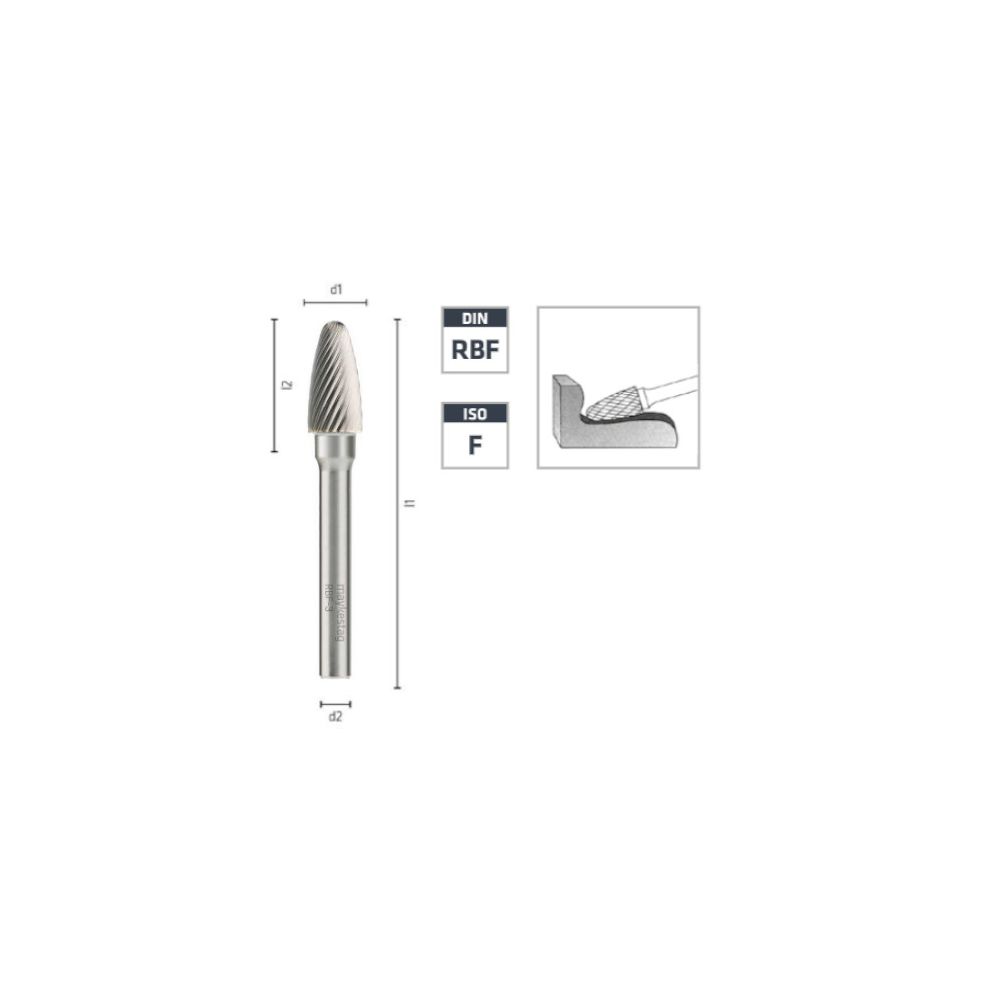 Ref. ALP-0788303103100En savoir + sur Fraise Rotative HM Tige Cylindrique Forme Arc à Nez Arrondi - Aciers, Inox D. 3 x Lt. 38 x Lu. 12 x Q. 3 mm - Diamwood