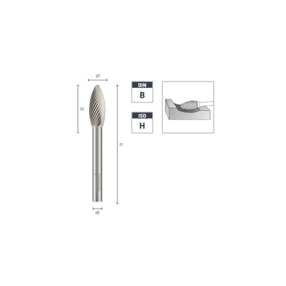 Fraise Rotative HM Tige Cylindrique Forme Flamme Croisée Fine - Fontes, Aciers D. 10 x Lt. 70 x Lu. 25 x Q. 6 mm - Diamwood