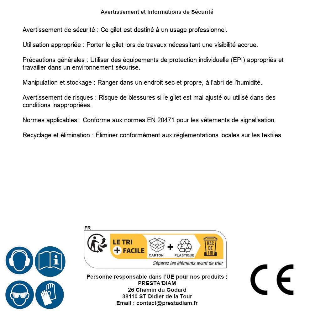 | Personne responsable UE | PRESTA'DIAM 26 Chemin du Godard 38110 ST Didier de la Tour Email : contact@prestadiam.fr |
