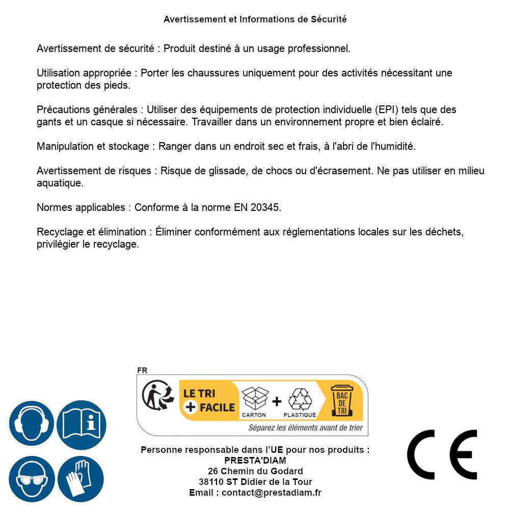 | Personne responsable UE | PRESTA'DIAM 26 Chemin du Godard 38110 ST Didier de la Tour Email : contact@prestadiam.fr |