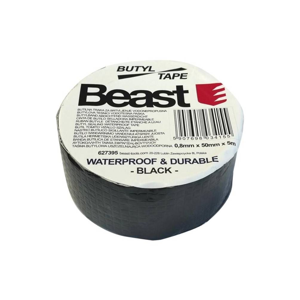 Ruban Butyle Étanche 0,8 mm x 50 mm x 5 m - Noir UV Résistant - Beast