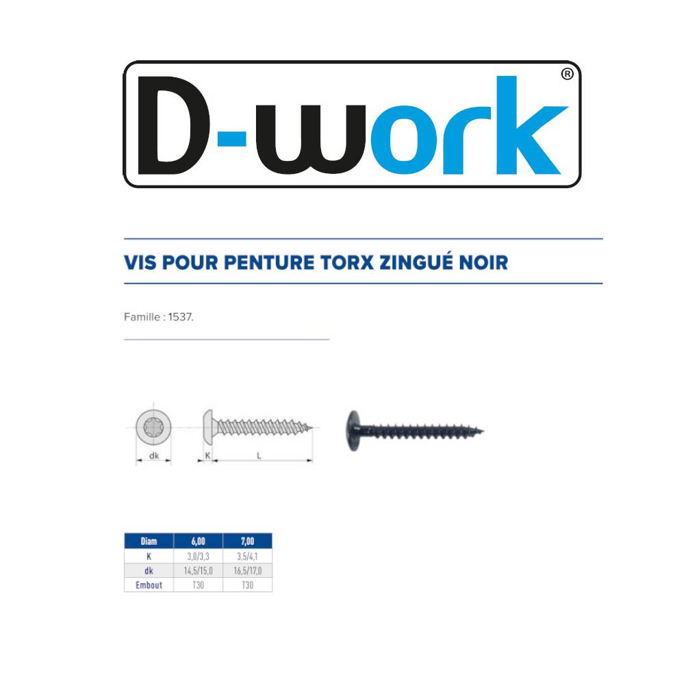 Ref. DK-37033712002En savoir + sur 100 Wooden Screws for Hinges 6 x 70 mm Torx TX 30 Black Zinc Plated - D-Work