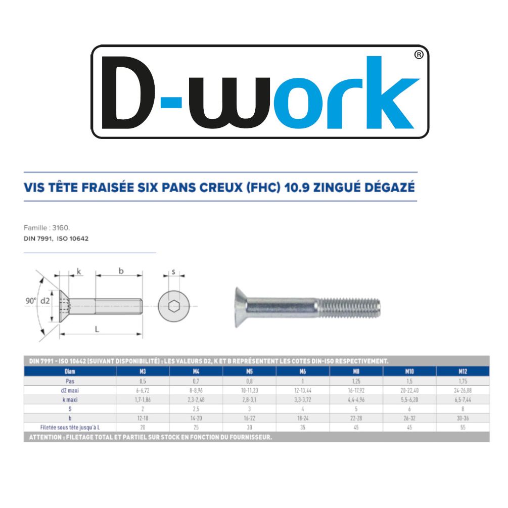 50 Vis à Tête Fraisée 12x20 mm – Acier CL10.9, Zingué Blanc – Fixation Sécurisée et Durable - LENNIE
