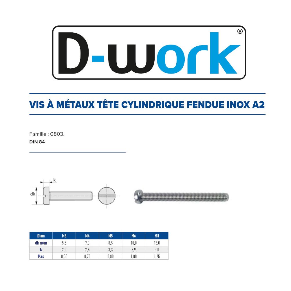 | WARNING and SAFETY | Avertissement de sécurité : Produit destiné à un usage domestique. Utilisation appropriée : Utiliser les vis uniquement pour le montage de matériaux compatibles. Précautions générales : Porter des gants de protection lors de la manipulation et travailler dans un environnement bien éclairé. Manipulation et stockage : Conserver dans un endroit sec et frais, à l'abri de l'humidité. Avertissement de risques : Risque de coupures lors de la manipulation. Tenir hors de portée des enfants. Normes applicables : Conforme à la norme DIN 84. Recyclage et élimination : Éliminer conformément aux réglementations locales sur les déchets métalliques. Identification de la personne responsable dans l’UE : Nom : PRESTA'DIAM. Adresse : 26 Chemin du Godard, 38110 ST Didier de la Tour (France). Email : contact@prestadiam.fr. |