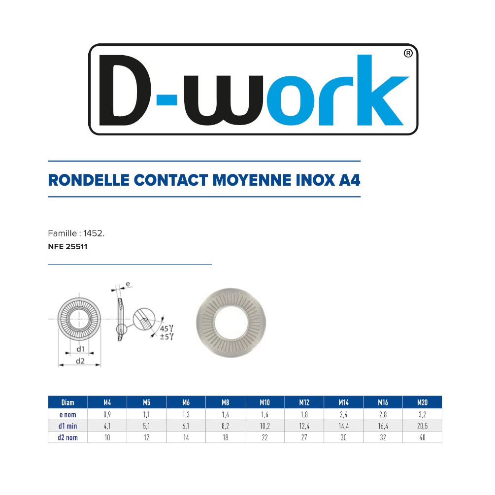 25 Rondelles de Contact Ø20 mm – Inox A2, Norme NFE 25511 – Résistance et Durabilité - LENNIE