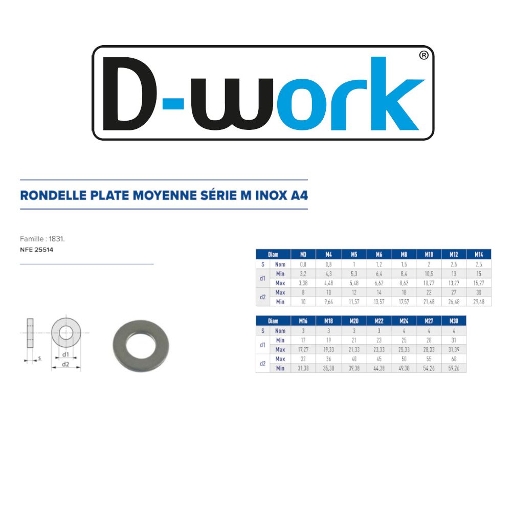 100 Rondelles Plates Moyennes D14 – Inox A4, Norme NFE 25514 – Résistance et Durabilité - LENNIE