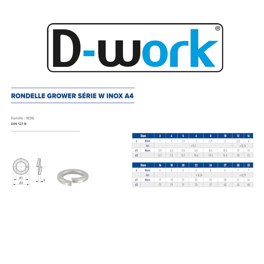 50 Rondelles Grower Série W20 – Inox A4, Norme DIN 127 B – Résistance et Durabilité - LENNIE