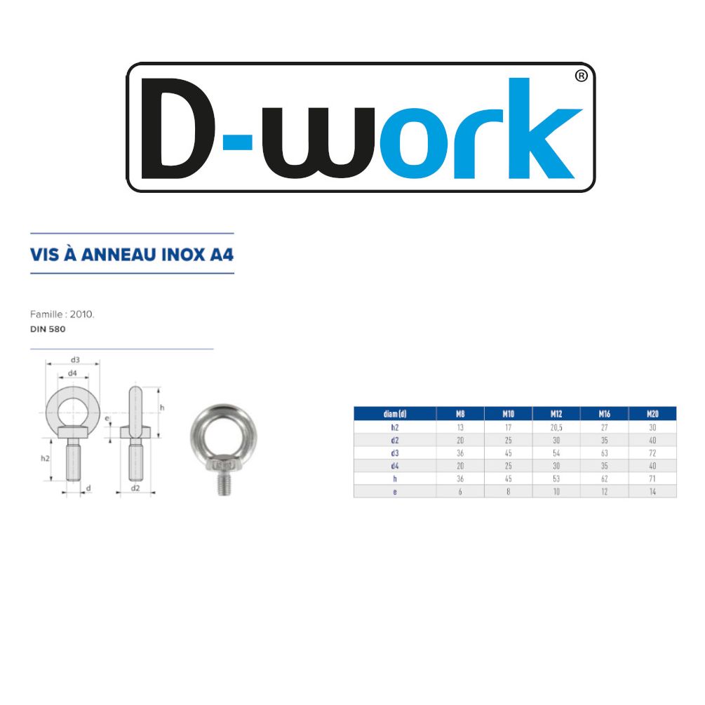 5 Vis à Anneau Ø20 mm – Inox A4, Norme DIN 580 – Résistance et Durabilité - LENNIE