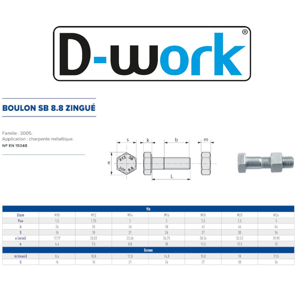 25 Boulons SB CL 8.8 16x70 mm – Zingué Blanc, Norme ISO 4014-4032 – Fixation Sécurisée et Durable - LENNIE